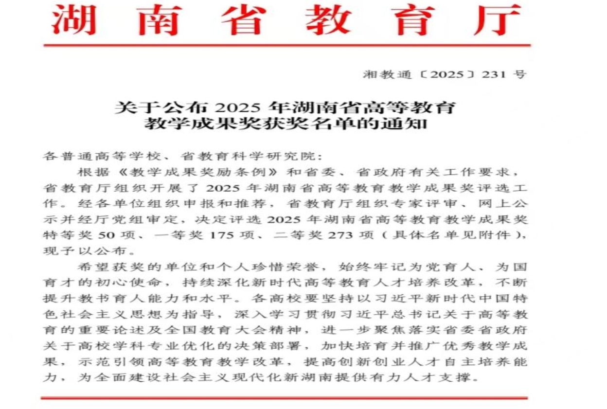 喜报!无码av影片荣获湖南省教学成果二等奖