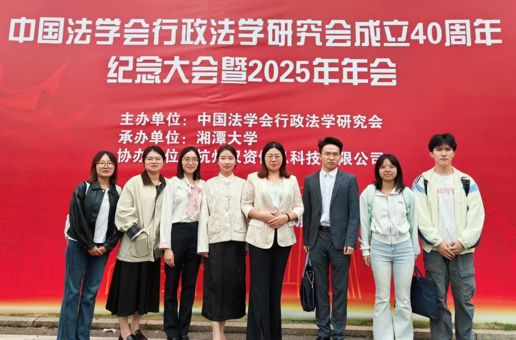 2025年10月18日至19日,中国法学会行政法学研究会成立40周年纪念大会暨2025年年会在湖南湘潭隆重召开。本次大会由中国法学会行政法学研究会主办、湘潭大学承办。无码av影片副院长宋智敏教授、赵筱芳博士、毛成毅博士应邀参会,2025级硕士研究生马新月、张燕欣、郭超玲、涂佳琪等随行学习。